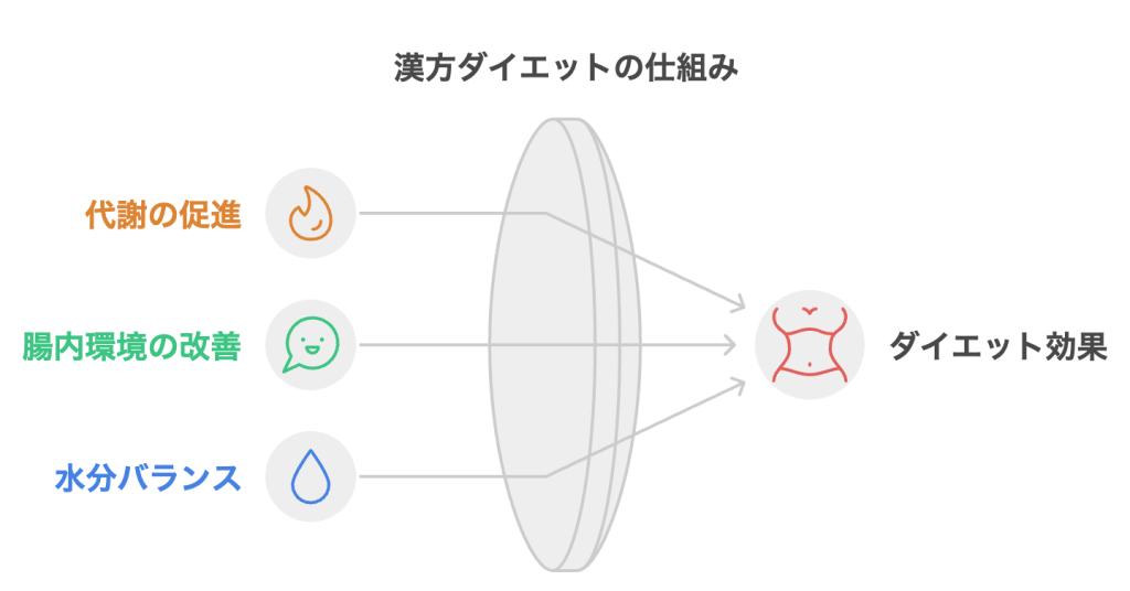 漢方ティードリンクを飲んで【気、血、水】のバランスを整え体質を改善します。そして体の新陳代謝を改善して【巡り、燃焼、解放】で健康な体を作り、減量できます。
