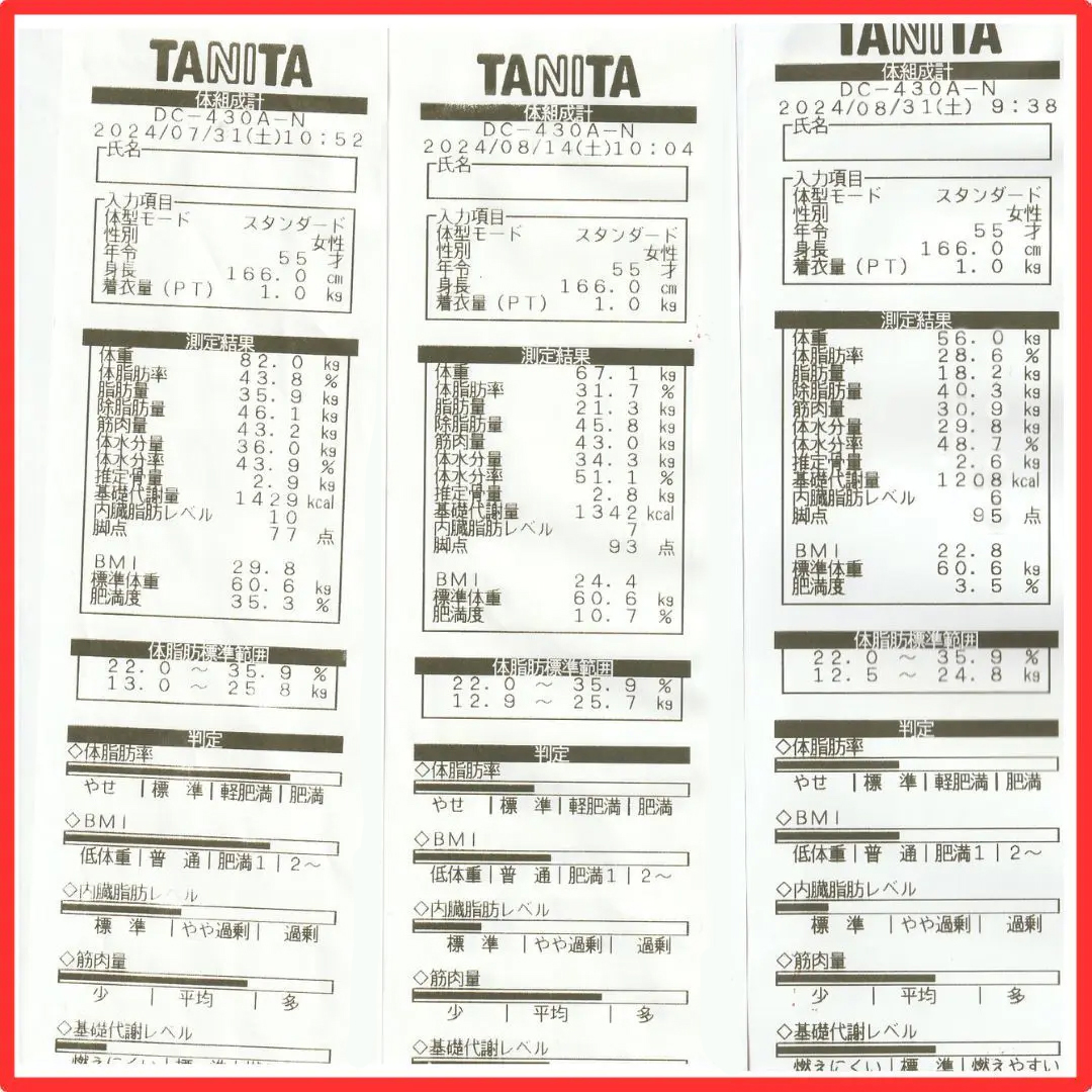 飲んだ後便秘がすぐ改善して、腸内環境も改善しました。二度とちょっとだけ刺激性食べ物を食べて痛くなくなりました。そして大事なのは減量成功と共に高血圧症も改善しました。仕事が忙しいけど、こんなに簡単で減量できるのは今まで想像出来なかった。今、体が軽くて健康になる事を感じて、本当にこの減量方法を感謝しております。